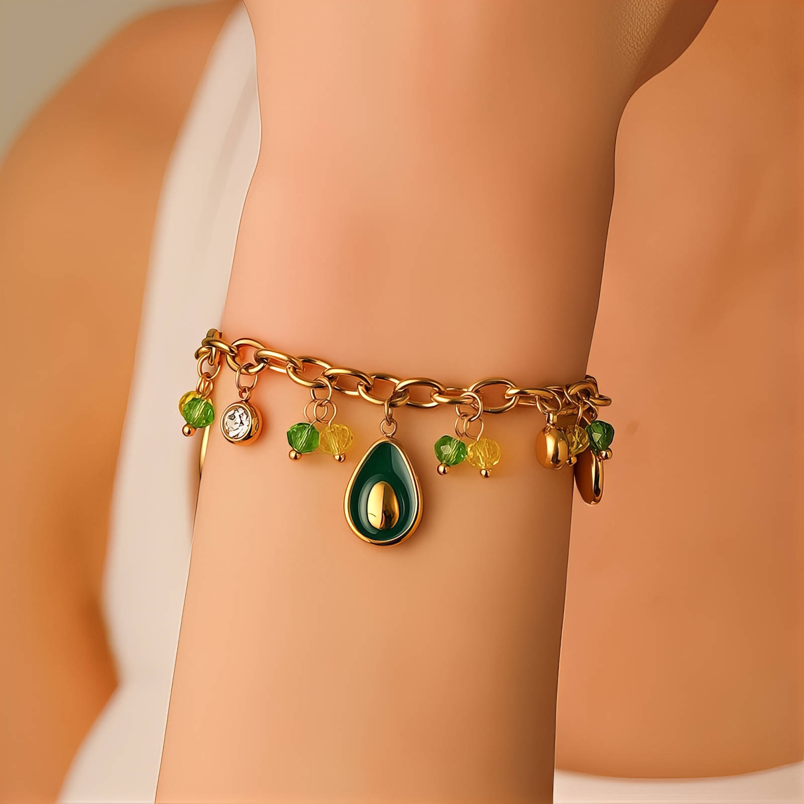 Retiazkový náramok s zelenými príveskami a zirkónmi