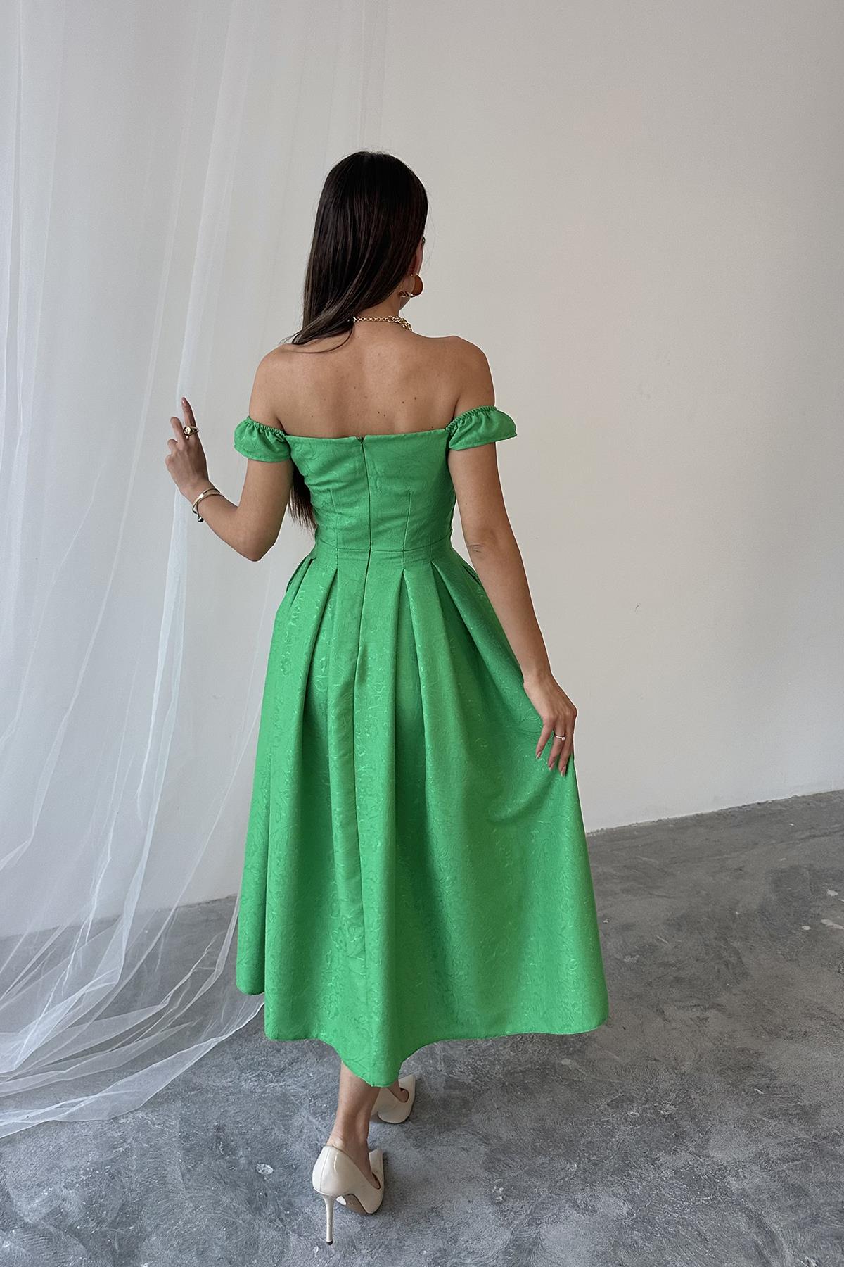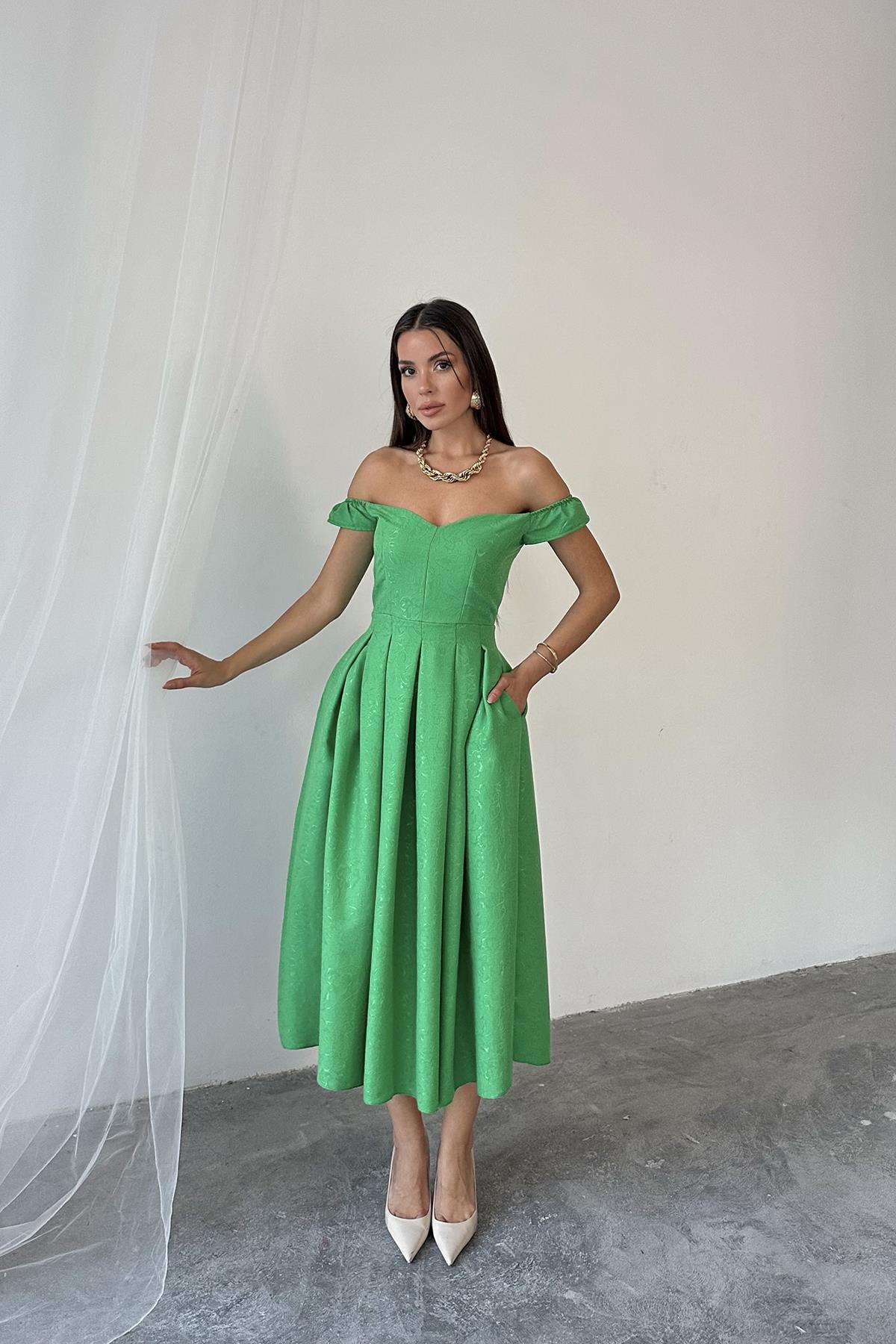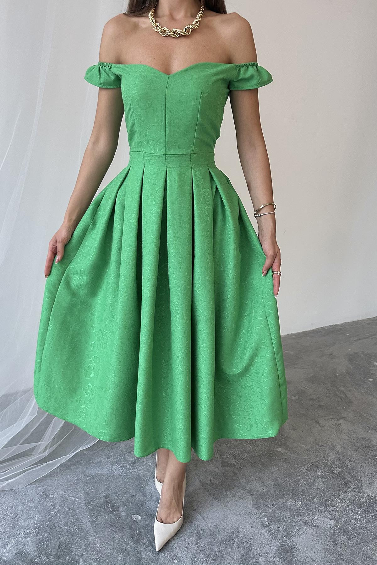 Tieto off-shoulder šaty v sýtej zelenej farbe stavia na čistom, ženským strihu a pohodlí pri nosení. Vrchná časť pekne zvýrazní ramená a dekolt, zatiaľ čo rozšírená midi sukňa dodá siluete ľahkosť a pohyb. Praktické detaily (ako vrecká) robia z tohto modelu kúsok, po ktorom siahneš vždy, keď chceš vyzerať upravene a cítiť sa komfortne.
