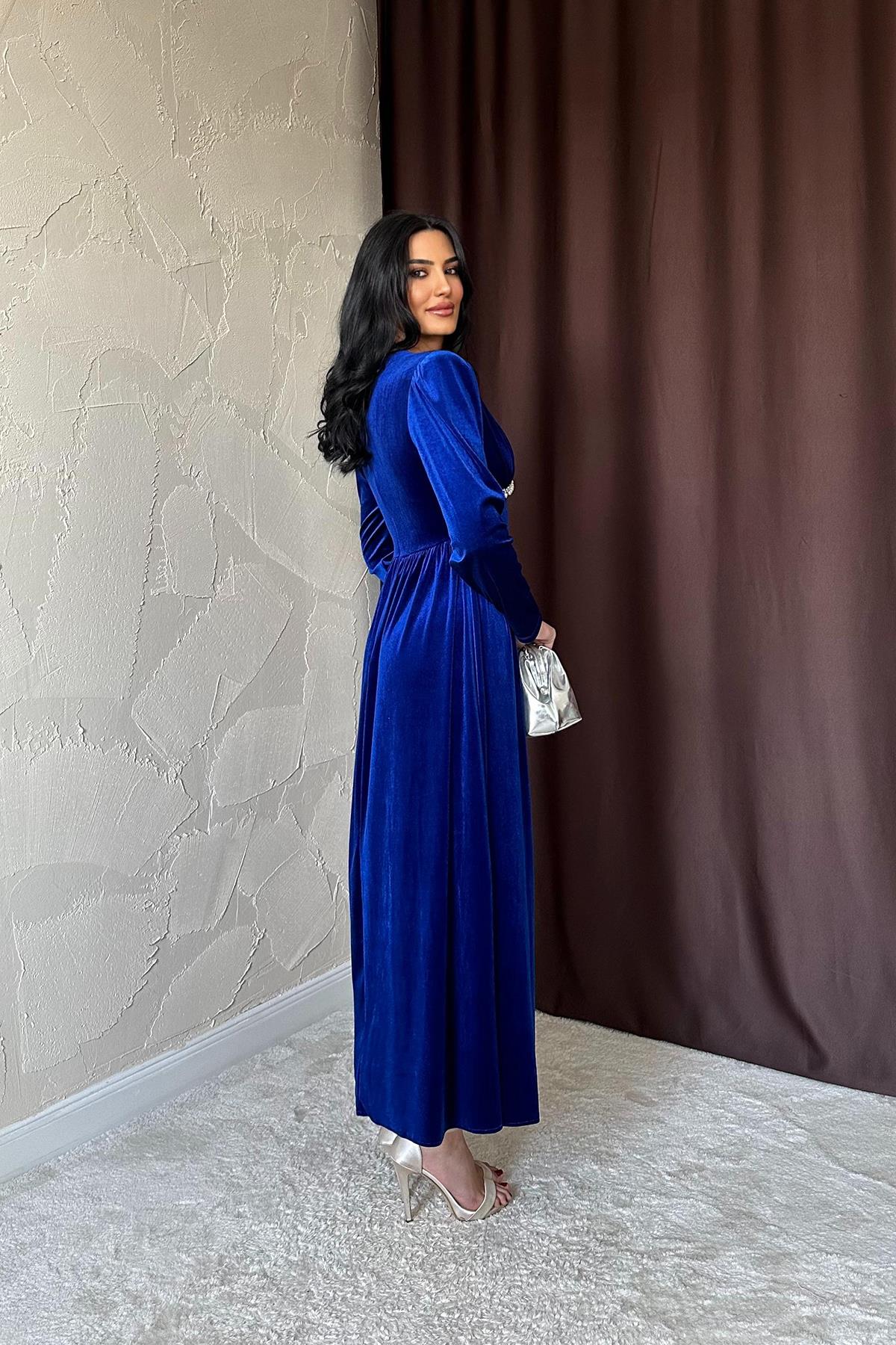 Tieto šaty sú stvorené na chvíle, keď chceš pôsobiť upravene a výnimočne bez zbytočného preháňania. Sýta kráľovská modrá a jemne lesklý, zamatovo pôsobiaci vzhľad dodávajú modelu luxusný dojem, zatiaľ čo V-výstrih a zvýraznený pás krásne formujú siluetu. Midi dĺžka a dlhé rukávy robia z tohto kúsku univerzálnu voľbu na spoločenské príležitosti počas celého roka.